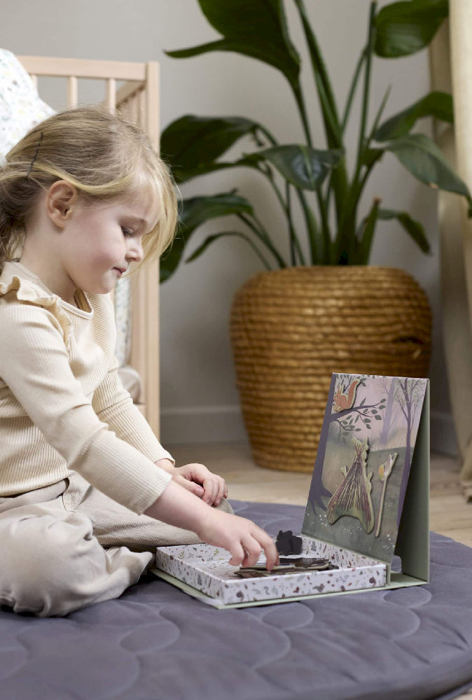 Ta fantastyczna gra magnetyczna z wieloma figurkami zwierząt zainspiruje dziecko do kreowania i przeżywania własnych przygód w pięknym lesie.