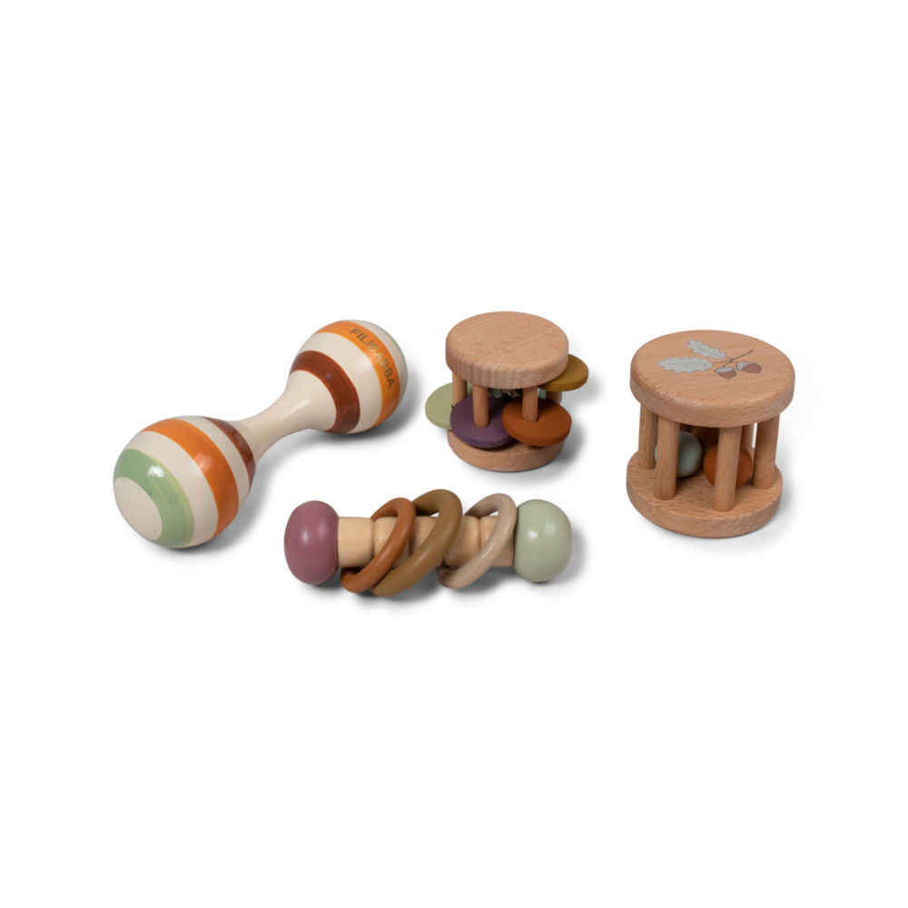 Zestaw 4 drewnianych zabawek sensorycznych w uroczej małej walizce, zachwyci każdego maluszka. Integracja sensoryczna ma kluczowe znaczenie w prawidłowym rozwoju dziecka. Zabawki tego rodzaju wspierają procesy integrowania zmysłów wzroku, dotyku i słuchu. Stymulują znacząco rozwój emocjonalny i fizyczny dziecka. Zabawki przykuwają uwagę przepięknymi kolorami, zostały wykonane z najwyższą jakością i dbałością o detale. Po skończonej zabawie można schować je do praktycznej, ozdobnej walizki. Zabawki sensoryczne w walizce Filibabba, to wspaniały pomysł również na prezent. Zabawka została przetestowana i zatwierdzona zgodnie z europejską normą bezpieczeństwa zabawek EN71.