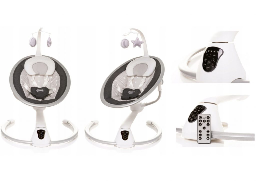Mechanizm posiada również timer, który automatycznie wyłącza kołysanie po 8, 15 lub 30. minutach. Dzięki wbudowanemu detektorowi ruchu, huśtawka włączy się sama, gdy tylko wyczuje, że maluszek się obudził. Huśtawka posiada elegancki, wygodny i łatwy w użyciu dotykowy panel sterowania, ale może być również obsługiwana za pomocą bezprzewodowego pilota (dołączonego do zestawu).