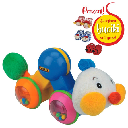 Wybierz właściwe zabawki rozwojowe dla Twojego dziecka. Słodka, kolorowa gąsieniczka, która po naciśnięciu grzbietu jeździ. Posiada piszczący ogonek, obracającą się główkę oraz kolorowe koraliki w kołach, które grzechoczą podczas zabaw. Zabawka posiada również pluszową główkę i ogonek, dzięki czemu sprawdzi się także jako przytulanka. Zalety: -bogata kolorystyka, która zachęci dziecko do zabawy -rozwój wielu umiejętności -zabawka wyposażona w gryzaki, które sprawdzą się podczas ząbkowania -super miękka w dotyku -idealna do przytulania -różnorodność materiałów, które pobudzają zmysły -możliwość zabawy wraz z rodzicem, co pogłębia kontakt -wykonana z wysokiej jakości materiałów Każdy element zabawek K's Kids jest zaprojektowany w taki sposób, aby wspomóc prawidłowy rozwój dzieci. Aby łatwiej było zrozumieć rodzicom, jakie zalety zawierają zabawy z produktami K's Kids, stworzono Trójkąt Umiejętności, który pokazuje czego dziecko potrzebuje dla prawidłowego rozwoju fizycznego, poznawczego oraz społecznego. Trójkąt Umiejętności to prosty przewodnik dla rodziców, pokazujący jakie umiejętności zdobywa lub rozwija dziecko w czasie zabawy daną zabawką i znajduje się na każdym opakowaniu produktów. Część zabawek jest zaprojektowana z myślą o rozwoju kilku sfer, inne mają za zadanie kształtować ich większą ilość-w zależności od potrzeb i możliwości dzieci znajdujących się na różnych etapach rozwoju. Jakie umiejętności może rozwinąć Twoje dziecko, podczas zabawy z gąsienicą? Rozwój fizyczny zmysły - pobudzają ciekawość dziecka i zachęcają je do odkrywania rzeczy znajdujących się dookoła niego. Zabawki stymulujące zmysły są niezwykle ważne we wczesnym okresie rozwoju dziecka motoryka mała - rozwija precyzyjne i kontrolowane ruchy, wraz z mimiką twarzy, koordynację wzrokowo-ruchową oraz prawidłową artykulację wyrazów motoryka duża - to ruchy większych mięśni odpowiedzialnych za pracę ramion, nóg, stóp lub całego ciała. Zabawki zachęcają dziecko do kopania, raczkowania, biegania lub skakania Rozwój poznawczy umiejętności logiczne - umożliwiają dzieciom łączenie skrawków informacji. Zabawki, takie jak układanki czy klocki, mogą wzmocnić dziecięcą inteligencję, układania w kolejności, koncentracji, argumentacji i rozwiązywania problemów Rozwój społeczny poczucie własnej wartości - jest kompleksem osiągnieć, które dziecko odbiera od ważnych od siebie ludzi, w szczególności od rodziców i rówieśników. Kiedy dziecko może dokończyć zadanie, jakie stawia przed nim zabawka, jest z siebie zadowolone. Pomaga mu to w budowaniu silniejszego poczucia własnej wartości i lepszej samooceny. Poniżej przedstawiamy poszczególne etapy rozwijające umiejętności dziecka, w zależności od wieku: Etap 1 (6-12m) Cel: Słuchanie i ćwiczenie koncentracji. Metoda: Naciśnij gąsienicę by stworzyć dźwięk. Obserwuj czy dziecko podążą wzrokiem za dźwiękiem. Cel: Stymulacja zmysłów - dotykanie i odczuwanie różnych tekstur. Metoda: Gąsienica wykonana jest z różnych materiałów. Zachęcaj dziecko by dotknęło i poczuło różne faktury zabawki jak i nierówną konstrukcję. Cel: Ćwiczenia motoryki małej - przekręcanie głowy gąsienicy. Metoda: Zachęć dziecko do kręcenia głową gąsienicy, wyda w ten sposób dźwięk który zaciekawi dziecko. Cel: Ćwiczenia motoryki dużej - raczkowanie. Metoda: Naciśnij na grzbiet gąsienicy by zaczęła jeździć. Zachęć dziecko do raczkowania za gąsienicą. Etap 2 (12-36m) Cel: Ćwiczenia motoryki dużej - popychanie gąsienicy. Metoda: Zachęć dziecko do samodzielnego naciśnięcia na grzbiet gąsienicy by zaczęła jeździć. Cel: Nauka kolorów. Metoda: Naucz dzieci rozpoznawać kolory i wskazywać je na gąsienicy. Cel: Wyczucie dystansu i koordynacja wzrokowo-ruchowa. Metoda: Zbuduj tunel z dostępnych elementów, np. klocków. Zachęć dziecko do skierowania gąsienicy w taki sposób, aby przejechała pod tunelem. Rodzice mogą zwiększać poziom trudności tej zabawy poprzez tworzenie tunelu o coraz węższej szerokości.