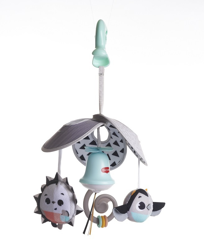 Składana, urocza i słodko brzmiąca karuzela. Wspieraj rozwój swojego dziecka w dobrym stylu! - 4 elementy, w tym dzwoneczek i grzechotka sowa, stymulują zmysły dzieci i zdolności motoryczne. - Kompaktowa, lekka konstrukcja karuzeli z możliwością złożenia, dzięki temu możesz ją ze sobą wszędzie. - Wykonana z wysokiej jakości tkanin o kontrastujących kolorach i uroczych geometrycznych wzorach, które są dostosowanie do wpierania rozwoju małych dzieci. Elementy karuzeli: 1. Uniwersalny klips 2. Składane skrzydełka 3. Dzwonek 4. Grzechotka ptaszek 5. Spiralna grzechotka 6. Lusterko Jeżyk Rozwój nigdy nie wyglądał tak stylowo! Wskazówki rozwojowe: Od 0 do 6 + miesięcy ROZWÓJ SPOŁECZNY I EMOCJONALNY – POCZUCIE BEZPIECZEŃSTWA Weź karuzelę, gdy wychodzisz z domu lub podróżujesz, aby dać dziecku to ważne poczucie bezpieczeństwa i domu. Od 0 do 3 + miesięcy ZMYSŁY - STYMULACJA WIZUALNA I DŹWIĘKOWA Lekko przesuwaj karuzelę – jej ruch, kontrastujący czarno-biały design i miękki dzwonek zachęcą dziecko do patrzenia na zabawkę, a tym samym stymulowania rozwoju wzroku i dźwięku. Od 2 do 4 + miesięcy RUCHY PRECYZYJNE Dziecko może ćwiczyć techniki łapania i potrząsania elementów zabawki, jednocześnie ciesząc się kontrastowym designem tego uroczej i kompaktowej karuzeli Od 4 do 6 + miesięcy KOJARZENIE – MYŚLENIE PRZYCZYNOWO-SKUTKOWE Wraz ze wzrostem kontroli rąk i ich świadomości dziecko uczy się podstaw myślenia przyczynowo-skutkowego i może odkrywać sposób działania spiralnej grzechotki. Każdy produkt marki Tiny Love stworzony jest z myślą o Siedmiu Elementach Rozwoju dziecka, wskazując rodzicom najlepszą drogę do tego, by ich maluch rozwijał się prawidłowo. Ten produkt rozwija następujące elementy: Ruchy precyzyjne - wystarczająco mała, aby zabrać ją ze sobą wszędzie. Karuzela stymuluje twoje dziecko do korzystania z palców i dłoni na różne sposoby, zachęcając do rozwoju umiejętności motorycznych. Zmysły - wyraźnie zarysowane kontrastujące kształty, czarno-biały wzór, dźwięki grzechotki, dzwonki i zabawne tekstury pobudzają dziecko i wspierają rozwój zmysłów. Rozwój emocjonalny i społeczny - już od najmłodszych lat dzieci docenią poczucie bezpieczeństwa i stabilności, dzięki karuzeli, która może im towarzyszyć wszędzie.