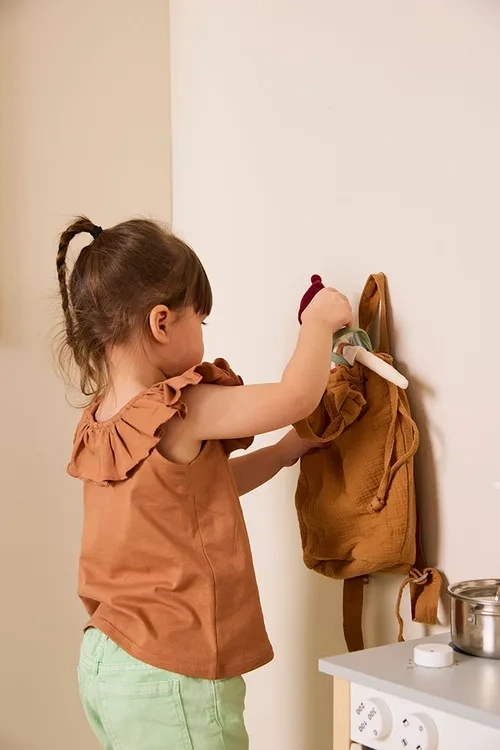 Ubranko lalki można zdjąć i założyć. Lalka może korzystać z łóżeczek i wózków dla lalek Kid's Concept. Można także uszyć własne ubrania dla Nilsa i Ingrid - lalek Kid's Concept. Zeskanuj kod QR znajdujący się na pudełku, aby pobrać wzory odzieży.