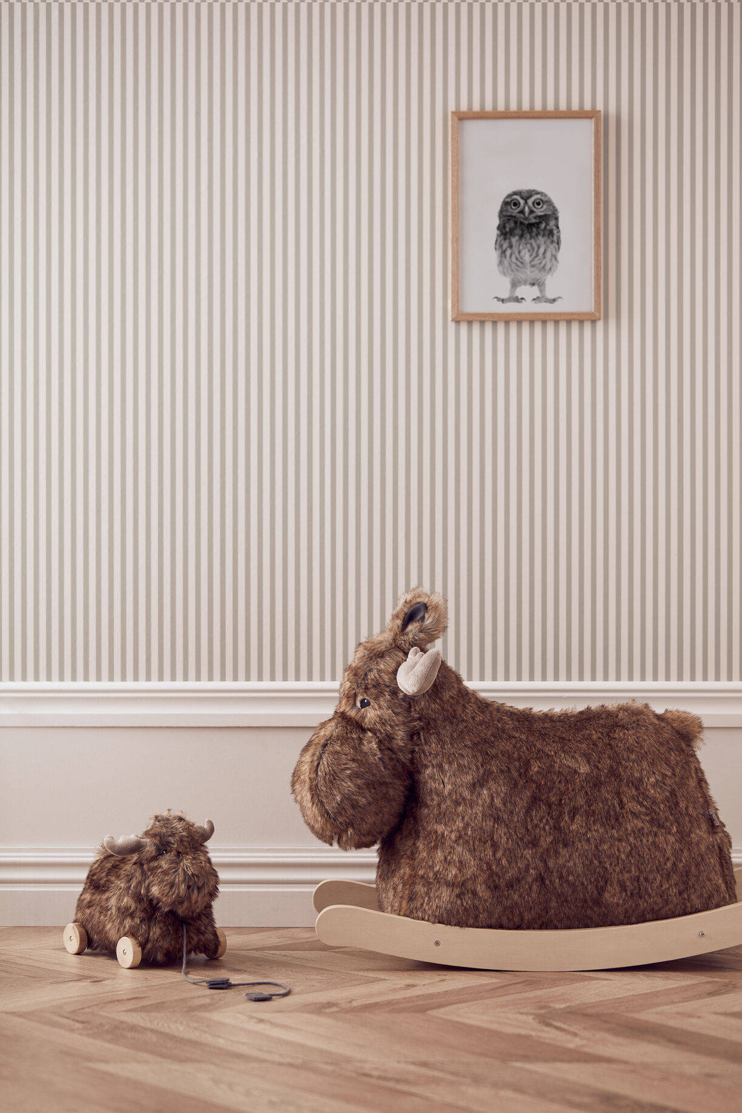 Mieszka w szwedzkim lesie ze wszystkimi innymi przyjaciółmi. Uwielbia kąpać się w pobliskich jeziorach, a jego ulubionym jedzeniem są małe czerwone jagody z jarzębiny. Zabawka to klasyczny konik na biegunach i zarazem ładna dekoracja, którą można umieścić w każdym pokoju. Nie zostawiaj dziecka na bujanym łosiu bez opieki.