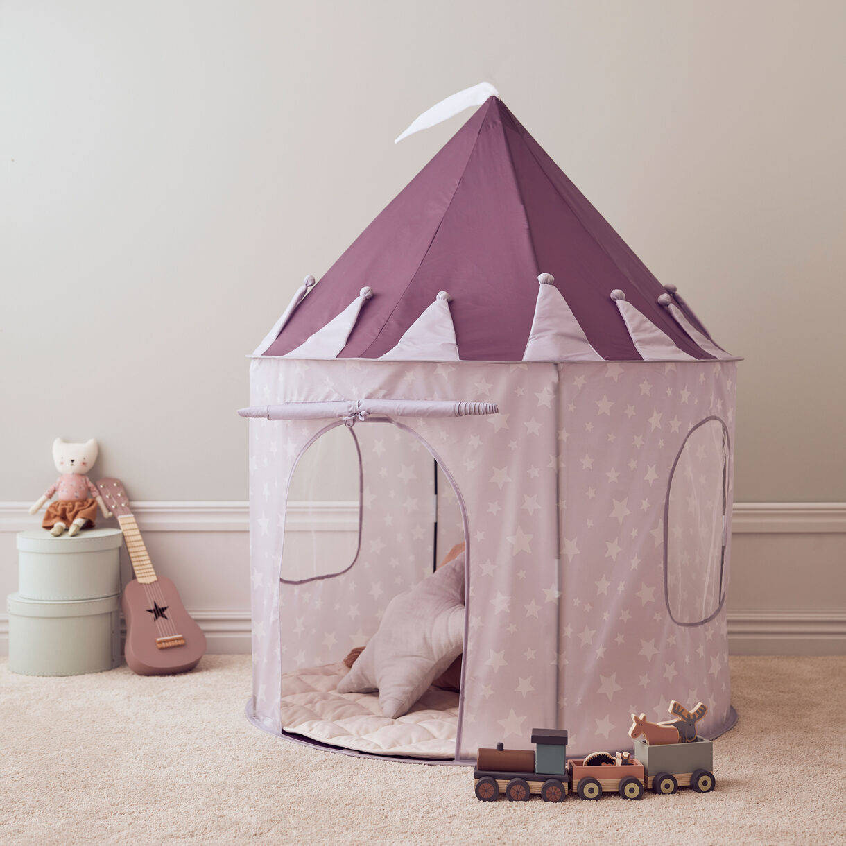 Namiot do zabawy to pomysłowy plac zabaw dla dzieci w każdym wieku. Dzięki szczegółowemu projektowi, w tym gwiazdom i girlandzie z chorągiewek zwisającej z sufitu, jest to idealne miejsce do zabawy, marzeń i rozwijania wyobraźni.