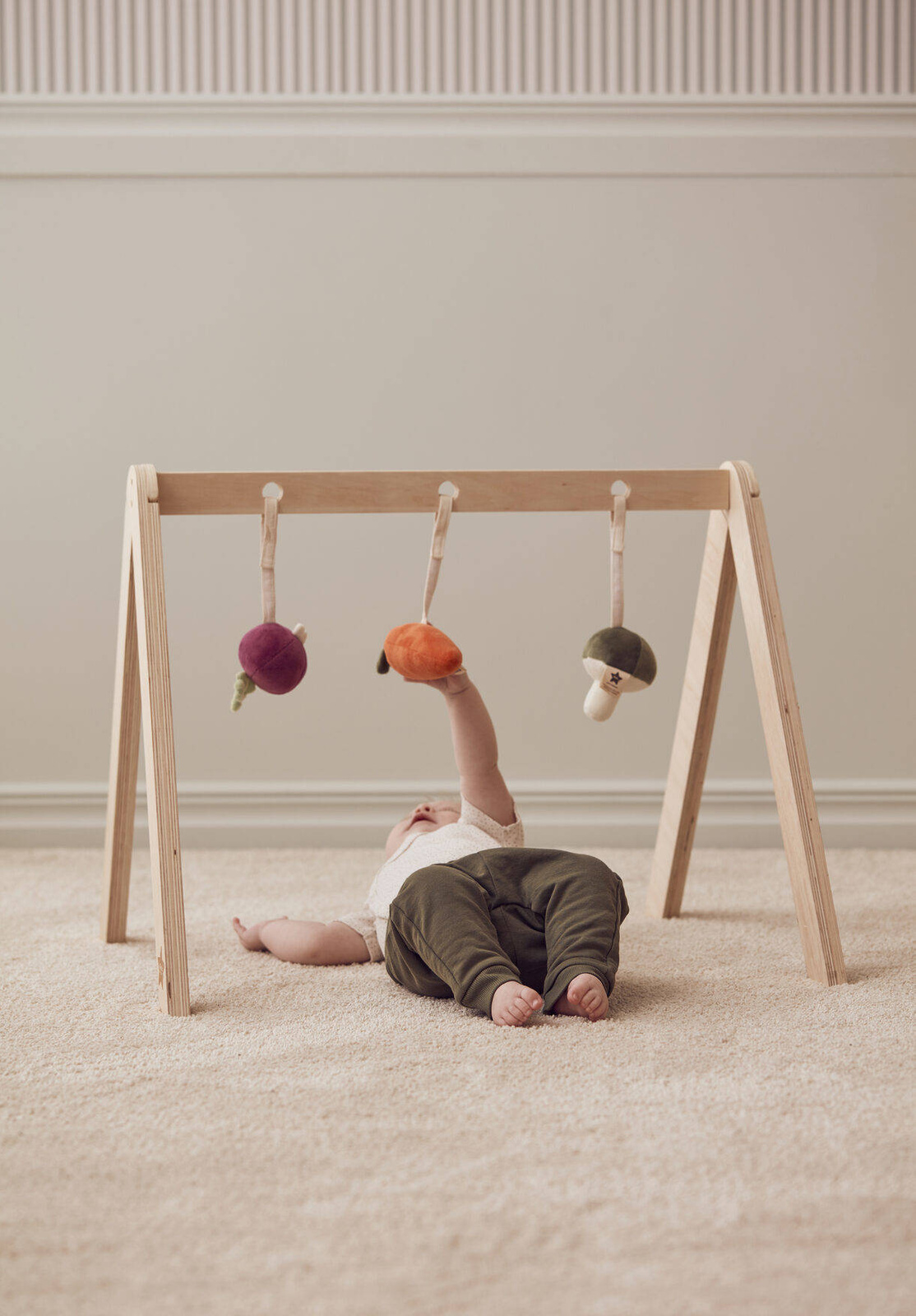 Możesz na niej zawiesić nasze zabawki dla niemowląt z serii EDVIN lub AIDEN, lub użyć ulubionych zabawek swojego malucha. Zawieszki nie wchodzą w skład zestawu. Nigdy nie zostawiaj dziecka bez opieki.