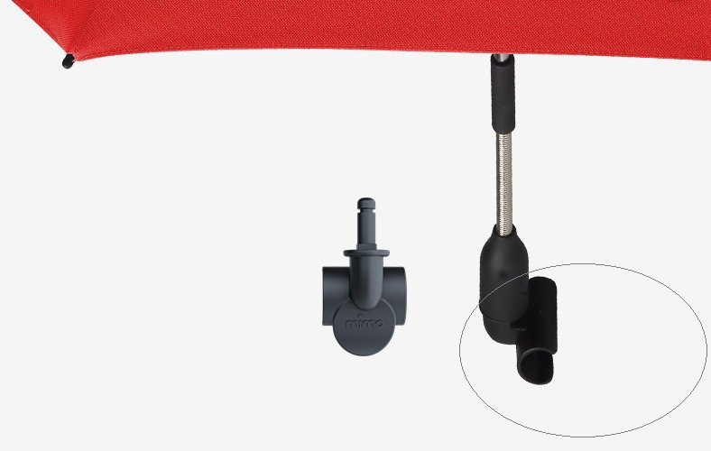 Zatrzask mocujący do parasolek i uchwytu na kubek w wózkach Mima Xari.