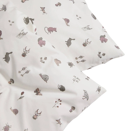 Mięciutka pościel dla dzieci z uroczym nadrukiem inspirowanym leśnymi zwierzętami, owadami, małymi kwiatami, liśćmi i grzybami będzie słodkim dodatkiem do sypialni Twojego dziecka. Pościel dla dzieci wykonano z bawełny organicznej, która jest miękka i przyjemna w dotyku. Pościel odpowiada standardowym wymiarom kołder „junior” (100x135 cm) i poduszek (40x60 cm). Przewróć na lewą stronę przed praniem, aby chronić nadruk na pościeli.