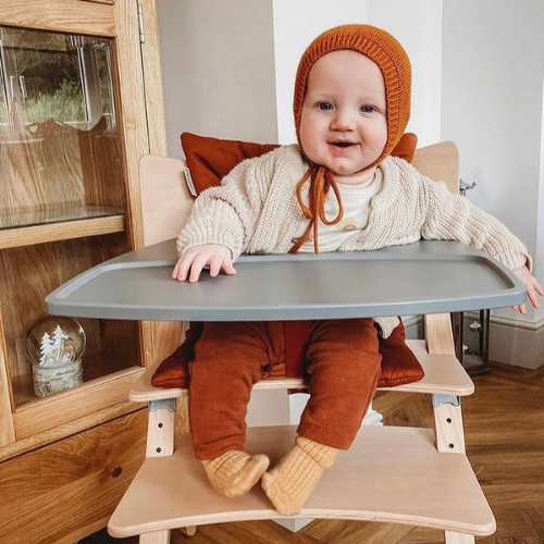 Teraz maluch może siedzieć w krzesełku i jeść, rysować lub bawić się – tuż obok Ciebie. Tacka do wysokiego krzesełka Leander Classic™ została zaprojektowana tak, aby nieco ułatwić codzienne życie. Montuje się ją bezpośrednio na poręczy krzesełka. Dzięki idealnemu dopasowaniu tacki do konstrukcji krzesełka możesz mieć pewność, że paluszki dziecka nie dostaną się między poręcz zabezpieczającą a blat. Wgłębienie w tacce pozwala łatwo zebrać wszystko, co „ucieknie” z talerzyka lub kubeczka.