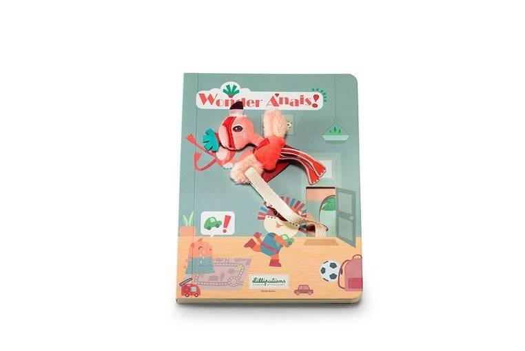 Książeczka przygodowa „Anais superbohaterka” belgijskiej marki Lilliputiens to idealna pierwsza lektura dla maluszka. Dzięki dołączonej do książki mini-przytulance – Flamingowi Anais w stroju superbohaterki (z opaską i peleryną) może brać aktywny udział w opowieści. Anais wyrusza w pościg za Lwem Jackiem, który zabrał zabawkę śwince Peggy. Podąża przez polanę, staw, dżunglę, a nawet podziemny labirynt, ale za każdym razem widzi tylko końcówkę lwiego ogona. Przechodzi przez szpary, okienka i dziury, by ostatecznie przekonać się, że... no, właśnie: co? Przekonajcie się, jaka czeka ją niespodzianka. Kolorowe, emocjonujące, pełne detali obrazki doskonale nadają się do snucia opowieści i łatwo zapadają w pamięć. Książeczka jest poręczna, wykonana z solidnego kartonu, w pełni bezpieczna dla dziecka. Pobudza dziecięcą wyobraźnię i ciekawość, aktywizuje zmysły wzroku, dotyku i sferę uczuciową. Jest także świetnym sposobem na zaszczepienie w dziecku miłości do książek.