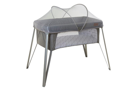 Łóżeczko ma w komplecie materac i torbą do przechowywania. Boki łóżeczka są wykonane z siatki, dzięki czemu są oddychające i wyjątkowo przyjemne w upalne dni.