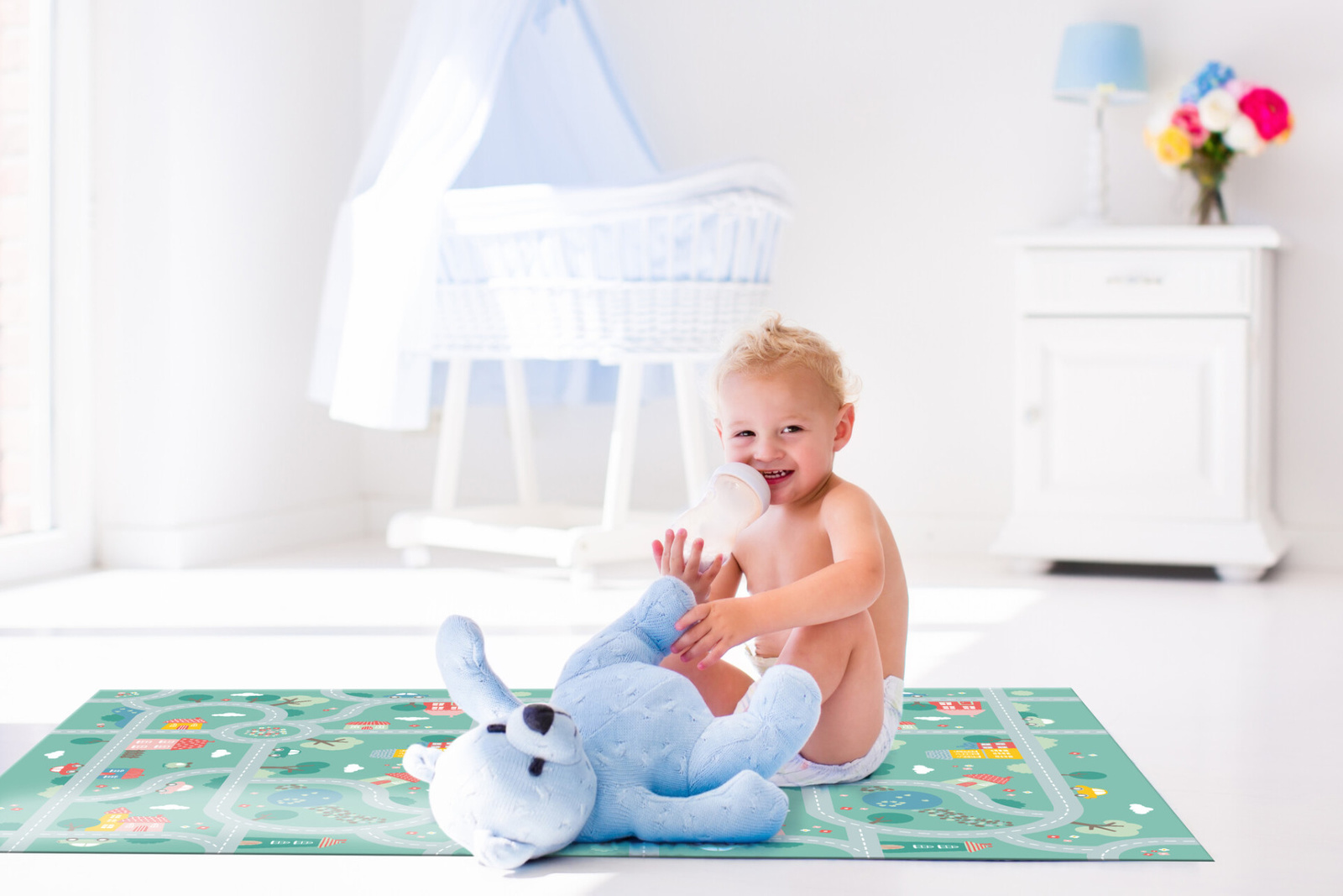 Kolorowa mata znanej belgijskiej marki acHOKa to wspaniała propozycja stworzona z myślą o dzieciach. Mata doskonale pobudza wyobraźnię najmłodszych, przykuwa uwagę bogactwem kolorów oraz pomaga poszerzać umiejętności manualne i motoryczne. Mata winylowa Wiejskie uliczki posiada kolorowy nadruk przedstawiający różne aspekty życia na wsi. Panorama prezentuje liczne budynki, kręte uliczki oraz inne elementy, które pozwolą rozwijać wyobraźnię i kreatywność u dzieci, zapewniając przy tym wspaniałą zabawę. Zachwycająca grafika i wyraziste kolory sprawiają, że mata szybko stanie się ulubionym miejscem zabawy i odpoczynku każdego dziecka. Mata będzie także wspaniałą ozdobą pokoju dziecięcego. Dzięki odpowiedniej grubości może być ciekawą alternatywą dywanu. Jej zaletą jest także doskonała izolacja od chłodnej podłogi i duża elastyczność, dzięki której znakomicie amortyzuje w razie upadku. Dodatkowym atutem maty jest łatwość w utrzymaniu i czyszczeniu oraz antypoślizgowa struktura, która zapobiega przesuwaniu. Cechy maty: - idealnie pasuje do pokoju dziecięcego, - oryginalny, kolorowy nadruk, - doskonale izoluje od chłodnej podłogi, - dzięki dużej elastyczności świetnie amortyzuje w razie upadku, - odpowiednia grubość nie krępuje ruchów dziecka, - posiada antypoślizgową strukturę, - jest łatwa w utrzymaniu i czyszczeniu, - wykonana z najwyższej jakości materiałów, - może być używana na zewnątrz, - jest odporna na promieniowanie UV, - może być używana w łazience (górna część maty nie jest powierzchnią antypoślizgową), - wymiary: 100x150 cm.