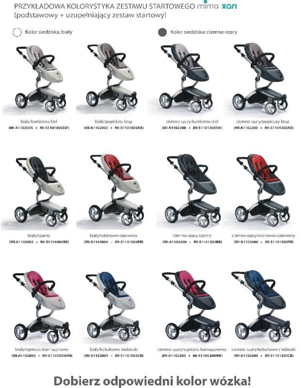 Uzupełniajacy zestaw startowy zawiera elementy niezbedne do pełnego skompletowania wyposażenia wózka Mima Xari. Zestaw zawiera: 1 wkładke z szelkami bezpieczenstwa 1 fartuch gondoli 1 materac do gondoli