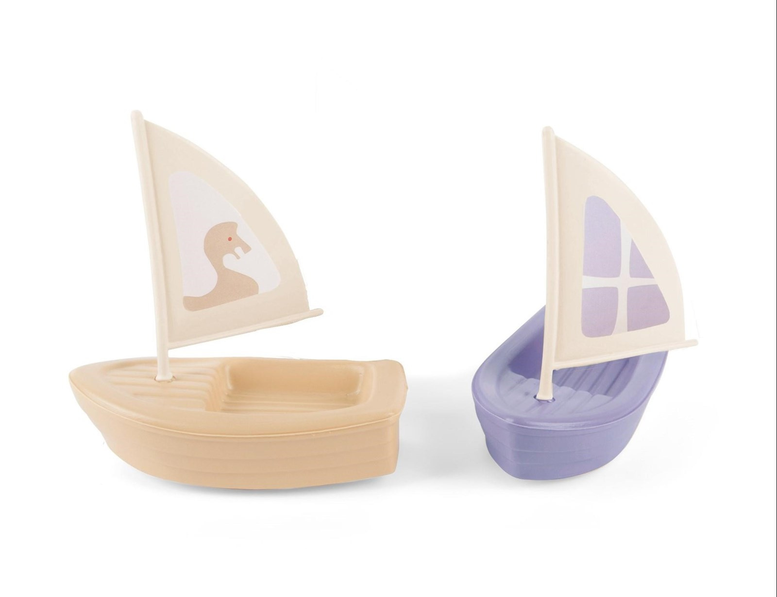 Pastelowa łódka żaglówka zapewnia wiele możliwości zabawy sensorycznej i eksploracji na świeżym powietrzu z piaskiem i wodą, wszędzie tam gdzie łódki mogą popłynąć.
