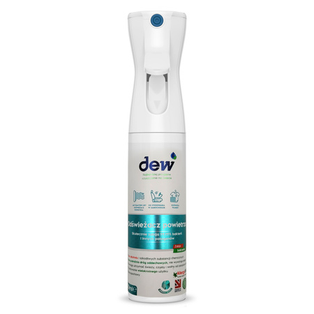 Odświeżacz powietrza 300 ml Odświeżacz powietrza Dew wykazuje 99,99% skuteczności w niszczeniu patogenów - to najskuteczniejszy sposób na odświeżenie i oczyszczenie powietrza w pomieszczeniach bez uszczerbku dla powietrza, którym oddychasz. Produkty Dew to najbezpieczniejsze, najłagodniejsze i najskuteczniejsze rozwiązania czyszczące na świecie, wykorzystując moc minerałów oceanicznych. Odświeżacz powietrza marki Dew neutralizuje niechciany zapach, który czasami przenika do Twojej przestrzeni życiowej, czy to w domu, w biurze, czy podczas jazdy samochodem. Jego zaawansowana formuła jest również skuteczna w niszczeniu patogenów w 99,99% - nasz odświeżacz powietrza to najskuteczniejszy sposób na odświeżenie i oczyszczenie powietrza w pomieszczeniach, bez uszczerbku dla jakości powietrza, którym oddychasz. Hipoalergiczna formuła Dew, nie powoduje podrażnień i plam, jest również przyjazna dla wegan. Odświeżacz Dew nie zawiera alkoholu ani szkodliwych chemikaliów, dzięki czemu jest idealnym rozwiązaniem do użytku w całej rodzinie – nawet w miejscach przygotowywania posiłków. Aktywny składnik naszego odświeżacza powietrza występuje naturalnie w naszych organizmach i chroni nas przed infekcjami. 3 NAJWAŻNIEJSZE FUNKCJE: • W 100% MINERALNE • ŁATWE W UŻYCIU • OCZYSZCZA POWIETRZE, KTÓRYM ODDYCHASZ Sposób użycia: Rozpylić obficie w powietrzu w celu dezodoryzacji. Aby odświeżyć ubrania, meble i dywany, spryskaj rzeczy z odległości co najmniej 1 metra. Produkty Dew wzmacniają moc minerałów, wykorzystując naukę do tworzenia bezpiecznych, niezawodnych, ale bardzo skutecznych, w 100% naturalnych i nietoksycznych środków czyszczących. Dew – najbardziej przyjazne czyszczenie na świecie.