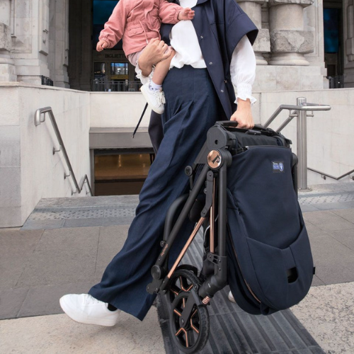 Wózek składa się do niewielkich rozmiarów, za pomocą jednego przycisku. Automatyczny system składania wózka PegPerego Vivace nie jest uzależniony od kierunku, w którym zamontowano siedzisko. Co więcej, podczas składania chowa się ono do wewnątrz, dzięki czemu jego tapicerka jest chroniona przed zabrudzeniami.