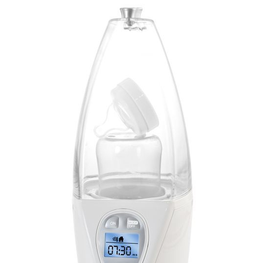 Podgrzewacz z wyświetlaczem do domu i samochodu służy podgrzewaniu i sterylizacji. Produkt automatycznie oblicza czas potrzebny do wykonania każdej operacji. Podgrzewacz jest bardzo intuicyjny i dokładny oferując podgrzanie posiłków do idealnej temperatury. Najbardziej zaawansowany cyfrowy podgrzewacz do butelek i sterylizator w jednym Automatycznie oblicza czas potrzebny do podgrzania w zależności od rodzaju żywności, jej wielkości czy temperatury początkowej osiągając w efekcie szybkie i odpowiednie podgrzanie. Nie wymaga odmierzania wody Nie jest konieczne określanie ilości wody, którą należy użyć w urządzeniu. Niezależnie od wielkości i temperatury butelki lub słoika z jedzeniem, wystarczy wlać tyle wody, ile pokazuje miarka wewnątrz urządzenia. Wszystko zawsze pod kontrolą dzięki łatwości i intuicyjności obsługi Wyświetlacz intuicyjnie poprowadzi Cię krok po kroku w wyborze pożądanej opcji, zawsze pokazuje wszystkie informacje o zachodzących procesach ułatwiając i przyspieszając użytkowanie. Podgrzewa butelki i słoiczki w prosty, naturalny sposób Podgrzewa naturalnie dzięki użyciu pary wodnej w wysokiej temperaturze, dlatego też idealnie nadaje się do podgrzewania mleka matki. Łatwa sterylizacja w tym samym urządzeniu W podgrzewaczu można jednocześnie przeprowadzić proces sterylizacji zarówno butelki jak i wszystkich jej akcesoriów. Podgrzewa butelki i słoiczki w domu lub w samochodzie Dzięki adapterowi podgrzewacz można używać w domu i w podróży. Ekskluzywna pokrywa wolna od BPA i wykonana z tworzywa Tritan™ Pokrywa jest niezwykle trwała i odporna. Materiał Tritan charakteryzuje się doskonałą odpornością chemiczną i wysoką wytrzymałością cieplną (pod wpływem ciepła nie wydziela szkodliwego Bisfenolu A). Programowanie następnego karmienia Podgrzewacz pozwala na zaprogramowanie czasu, po którym zacznie się podgrzewanie, tak więc możemy uzyskać podgrzanie posiłku wtedy kiedy będzie to potrzebne. Wizualne i dźwiękowe ostrzeżenia dla maksymalnego bezpieczeństwa Ostrzeżenia zarówno wizualne i dźwiękowe informują o zakończeniu procesu podgrzewania lub o braku wody, wówczas podgrzewacz automatycznie wyłącza się. Nowoczesny design dopasowany do każdej kuchni Srebrny kolor sprawi, że podgrzewacz będzie ulubionym kuchennym urządzeniem rodziców. Cechy: inteligenty podgrzewa sterylizuje idealny do podgrzewania mleka matki do użytku w domu oraz w samochodzie timer Informacje techniczne: uniwersalny, do wszystkich typów butelek możliwość mycia w zmywarce: jedynie akcesoria Funkcje: czas podgrzewania (minuty): 2,5 - dla butelek 240 ml, od temperatury otoczenia czas sterylizacji (minuty): 7,5 wyświetlacz wskaźnik świetlny wskaźnik dźwiękowy automatyczne wyłączanie zwijacz kabla Akcesoria: kabel do samochodu pojemnik z miarką