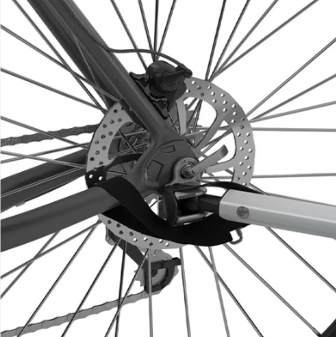 Mocowanie należy przykręcić do ramy roweru przy tylnim kole.