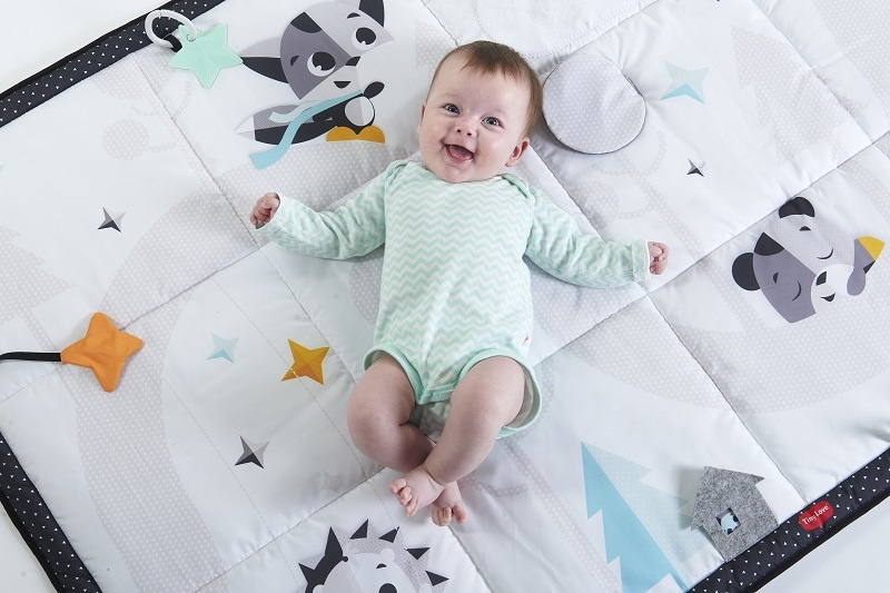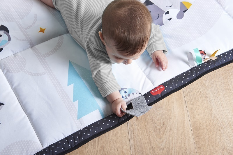 Rozwój i styl łączą się w przestronnej czarno-białej macie interaktywnej. Wspieraj rozwój swojego dziecka w dobrym stylu! Mata interaktywna Gigant - Magiczna Kraina to jedna z największych mat marki Tiny Love. Duży rozmiar zapewni maluszkowi komfort i bezpieczeństwo. Mięciutka przestrzeń oferuje miejsce do motorycznych i sensorycznych doświadczeń dziecka leżącego na pleckach, brzuszku lub turlającego się. Stymulowanie różnych zmysłów pozwala na ćwiczenie koordynacji, równowagi i postawy oraz uczy niemowlę kontroli ruchów swojego ciała Ekstra duży obszar do rozwoju dziecka, który go zaciekawi i zachęci do rozwoju ruchów całego ciała Regulowane, wolnostojące lusterko angażujące dziecko i pomagające wydłużyć czas na brzuszku Kontrastowy czarno-biały design maty od samego początku zapewni dziecku istotną stymulację zmysłu wzroku Łatwa do złożenia i przenoszenia z dużą ilością aktywizujących elementów. Do zastosowania zarówno w domu, jak i na zewnątrz Stanowi część czarno-białej kolekcji Magiczna Kraina Rozwój nigdy nie wyglądał tak stylowo! Elementy maty: Uchwyt i elastyczny przycisk ułatwiają składanie maty i jej przenoszenie Miękka pluszowa chmura Błyszczące satynowe wstążeczki Możliwość prania w pralce 1. Angażujący domek a ku-ku. 2. Matę można prać w pralce. 3. Szeleszcząca gwiazdka oferująca stymulację sensoryczną. 4. Gryzak w kształcie gwiazdki - łatwy do uchwycenia. 5. Guziczek oraz pętelka umożliwiające spięcie maty po złożeniu. 6. Lusterko dla przedłużenia czasu na brzuszku. 7. Miękka, pluszowa chmurka. 8. Satynowe wstążki. Wskazówki rozwojowe: Od 0+ miesięcy ROZWÓJ EMOCJONALNY I SPOŁECZNY Od pierwszych dni mata będzie idealnym miejscem, aby zbliżyć się do dziecka i wzmocnić więź między wami. Połóż się obok dziecka, przytulaj, go, baw się z nim. Ciesz się możliwością poznawania się z dzieckiem. Od 2+ miesięcy RUCHY CAŁEGO CIAŁA – czas na brzuszku Zachęcaj dziecko do leżenia na brzuszku, połóż dziecko tak, by znalazło się przed jakimś elementem maty bądź obrazkiem.Wskaż mu magiczne ilustracje, zwróć uwagę dziecka na drzewko i satynowe wstążeczki. Możesz też umieścić przed dzieckiem lusterko i zachęcić, by się w nie wpatrywało. Od 5+ miesięcy KOJARZENIE Kiedy dziecko siedzi, pozwól mu cieszyć się przytulnym miejscem do zabawy i odkrywania różnych elementów maty zarówno w domu, jak i na zewnątrz. Pozwól maluszkowi odkryć różne funkcje maty pod innym kątem. Każdy produkt marki Tiny Love stworzony jest z myślą o Siedmiu Elementach Rozwoju dziecka, wskazując rodzicom najlepszą drogę do tego, by ich maluch rozwijał się prawidłowo. Ten produkt rozwija następujące elementy: Ruchy całego ciała - duży obszar do zabawy pozwala dziecku na rozciąganie swojego ciała, eksperymentowanie z ruchem oraz turlaniem się, wydłużaniem czasu na brzuszku czy siedzeniem ciesząc się wieloma aktywizującymi elementami maty. Zmysły - kolorowy design oraz wyraźnie zdefiniowane ilustracje, grzechoczące i szeleszczące elementy oraz różne tekstury stymulują zmysły dziecka. Rozwój emocjonalny i społeczny - zacieśnianie więzi z dzieckiem jest doskonałym sposobem na uspokojenie go i wspieranie jego rozwoju emocjonalnego. Ciesz się dużą i mięciutką matą wraz z dzieckiem zarówno w domu, jak i w parku. Ruchy precyzyjne - gdy dzieci badają błyszczące satynowe wstążki, ćwiczą mięśnie rąk i palców i rozwijają swoje ruchy precyzyjne. Kojarzenie - gdy dzieci bawią się w a ku ku za pomocą zabawnego drzewka w ich umysłach zaczyna pojawiać się zrozumienie trwałości obiektu.