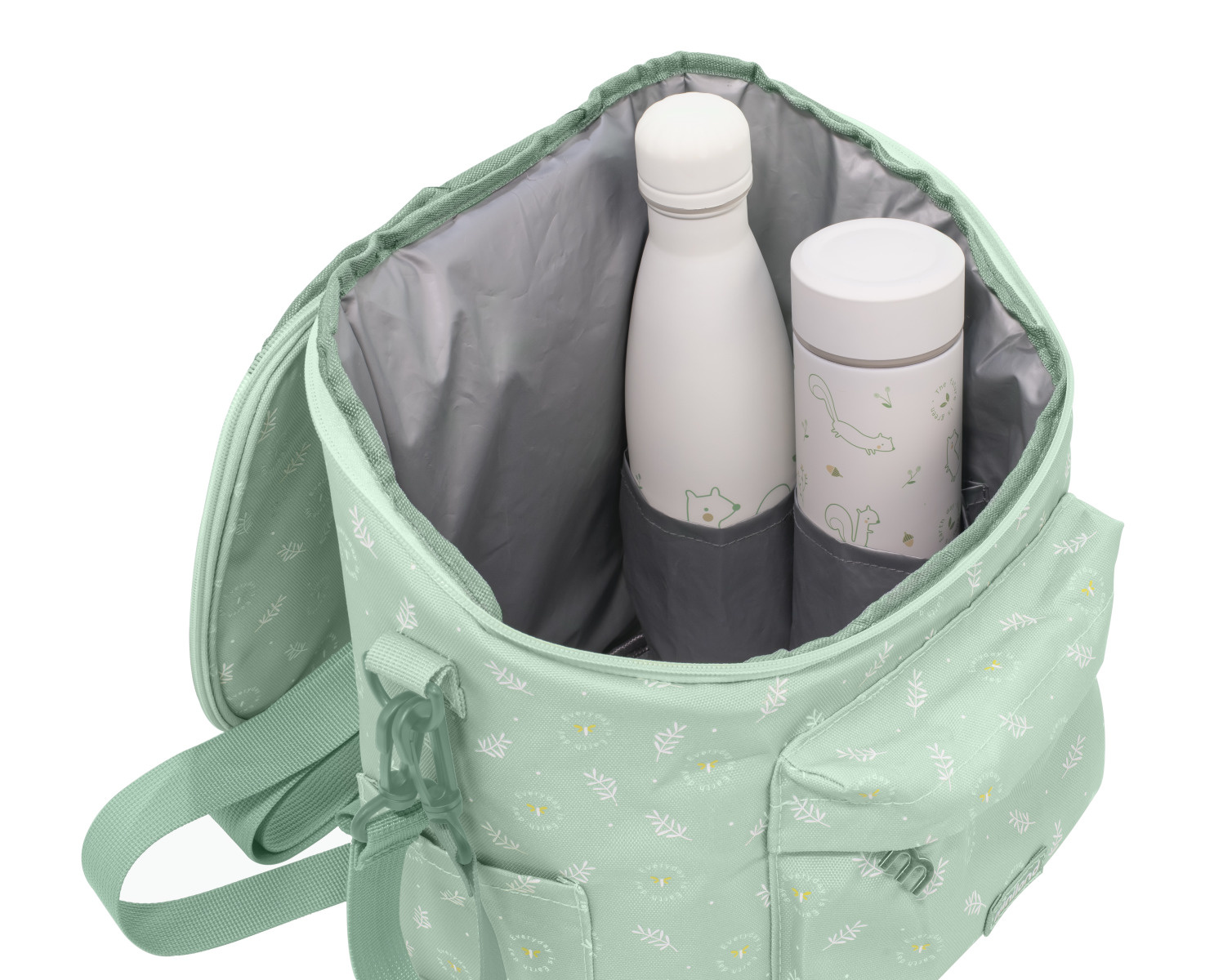 Ekologiczny plecak idealny do przenoszenia dziecięcego jedzenia w dowolne miejsce. Plecak posiada delikatny zielony kolor oraz regulowane szelki które odciążą kręgosłup. Tkanina użyta do wykonania tego plecaka pochodzi z przetworzonego plastiku (rPET), a wewnętrzna warstwa izolacyjna pomaga utrzymać temperaturę i chroni dziecięce obiady i przekąski przed zmianami temperatury. Zaprojektowany do zabrania wszędzie, ma dwie kieszenie o różnych rozmiarach. Główna kieszeń jest pokryta izolacją, która pomaga utrzymać temperaturę pokarmu, a także ma specjalną małą kieszonkę do przechowywania butelki dla niemowląt i zapobiegania jej przewracaniu się lub przesuwaniu w środku. Druga kieszeń, która jest mniejsza, idealnie nadaje się do przechowywania innych, mniejszych akcesoriów, dzięki czemu wszystko mieści się w jednym plecaku. Dodatkowo posiada dwie boczne kieszenie na butelki i termosy. Cechy: - wykonany z wysokiej jakości ekologicznego materiału, który pozwala utrzymać pożądaną temperaturę posiłków przez długi czas - lekki, łatwy do czyszczenia i przenoszenia plecak - torba izotermiczna zamykana na zamek błyskawiczny - doskonałe do przechowywania posiłków dziecka w czasie spacerów i podróży - idealny do przechowywania butelek i termosów - posiada kieszeń główną, kieszeń przednią oraz dwie boczne kieszenie