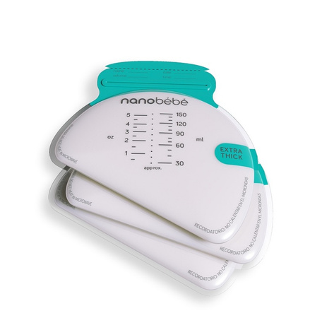Powszechnie wiadomo, że najlepsze dla prawidłowego rozwoju dziecka jest mleko matki, w którym znajdują się ważne składniki odżywcze. Zdarzają się jednak sytuacje, w których bezpośrednie karmienie piersią jest utrudnione lub wręcz niemożliwe (powrót do pracy, ból przy karmieniu piersią lub zbyt duża ilość pokarmu). Wówczas optymalną opcją jest odciąganie pokarmu. Jednakże chłodzenie, zamrażanie i podgrzewanie mleka może prowadzić do utraty ważnych składników odżywczych. Jest na to sposób – rewolucyjne produkty marki Nanobébé. Nanobébé to innowacyjne i nowoczesne torebki do przechowywania mleka, które zarówno zapobiegają rozlewaniu się i zepsuciu mleka, jak i chronią jego cenne składniki. W jaki sposób przechowywać mleko matki w torebkach Nanobébé? Torebki przeznaczone są do przechowywania mleka w płytkiej warstwie – tym samym schładzają i rozmrażają się szybko, redukując rozwój bakterii i zachowując składniki odżywcze. Torebki do przechowywania mleka kobiecego Nanobébé są trwałe, szczelne, wykonane z mocnego plastiku przeznaczonego do kontaktu z żywnością, posiadają również solidny, podwójny zamek. Cechy: -50 sterylnych, jednorazowych torebek do przechowywania mleka -Równomierne rozmrażanie mleka pomaga zachować składniki odżywcze -Szybkie schładzanie zmniejsza rozwój bakterii -Torebki odporne na rozrywanie, wykonane z wytrzymałego i trwałego materiału -Podwójny zamek (taki jak w torebkach strunowych) -Precyzyjnie mierzy ilość mleka -Szeroki otwór ułatwia napełnianie torebek -Higieniczne -Torebki zajmują mało miejsca -Na torebkach znajdują się etykiety do wypełniania: name, volume, date, time (imię, objętość, data, czas) -Wolne od BPA i ftalanów Płaskie torebki pomagają zachować składniki odżywcze mleka matki - utrzymują mleko w płytkiej warstwie, dzięki temu mleko szybciej schładza się, co zmniejsza rozwój bakterii oraz szybciej rozmraża się, co pomaga zachować składniki odżywcze.