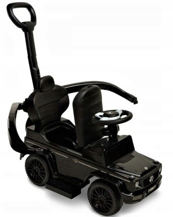 • TOYZ JEŹDZIK DZIECIĘCY Z DŹWIĘKAMI 3W1 MERCEDES G350D PCHACZ Z RĄCZKĄ PODNÓŻKI BARIERKI OCHRONNE, CZARNY (15187N)