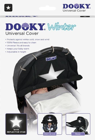Dooky w swojej kolekcji zadedykowanej na sezon zimowy posiada uniwersalną osłonkę do wózka i fotelika, wykonaną z polaru, z odblaskową gwiazdą. Osłonka ta nie tylko ochroni Twojego maluszka przed światłem, wiatrem, słońcem, hałasem, lekkim deszczem i innymi niedogodnościami, ale również przed zimnem i śniegiem! Dzięki odblaskowi jesteś bezpieczna i widoczna na drodze podczas spaceru, kiedy się już ściemni.