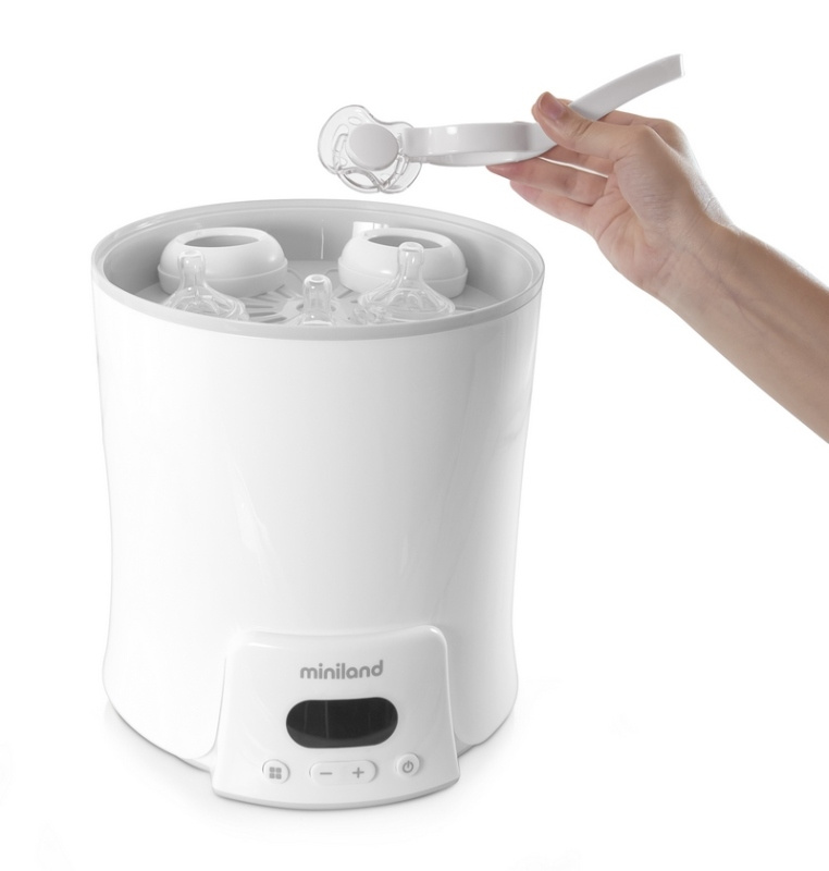 Podgrzewacz do butelek, sterylizator i parowar 6w1 Najważniejsze cechy: sterylizuje gotuje na parze rozmraża automatyczne wyłączanie równomiernie podgrzewa duża pojemność wyświetlacz cyfrowy utrzymuje temperaturę 6 funkcji w jednym urządzeniu: sterylizuje do 6 butelek w tym samym czasie równomiernie podgrzewa butelki i pokarm dziecięcy rozmraża parą butelki i pokarm dziecięcy gotuje na parze warzywa zachowując ich wartości utrzymuje temperaturę płynów w butelce i pokarmów gotuje do 6 jajek w tym samym czasie Skuteczna sterylizacja Najbardziej skutecznym i naturalnym sposobem sterylizacji jest poprzez parę. Dzięki dużej pojemności urządzenia można szybko i naturalnie wysterylizować do 6 butelek i innych akcesoriów. Idealny do podgrzewania naturalnego mleka Miękkie i jednorodne rozmrażanie i podgrzewanie, dzięki któremu podczas procesu nie traci się żadnych właściwości mleka matki, zachowując wszystkie witaminy i składniki odżywcze po osiągnięciu wybranej temperatury. Parowar Gotuje wszystkie rodzaje gotowanych na parze warzyw, zachowując ich właściwości i składniki odżywcze. Dodatkowo można gotować maksymalnie 6 jajek w ciągu kilku minut. Zawsze wiemy, ile pozostało czasu sterylizacji Dzięki urządzeniu możesz wybrać preferowany czas podgrzewania lub sterylizacji i dzięki wyświetlaczowi zobaczyć, ile czasu pozostało do końca procesu. Automatyczne wyłączanie Po zakończeniu programu każdej z funkcji, urządzenie automatycznie wyłącza się po kilku minutach - dla większego bezpieczeństwa i oszczędności energii.