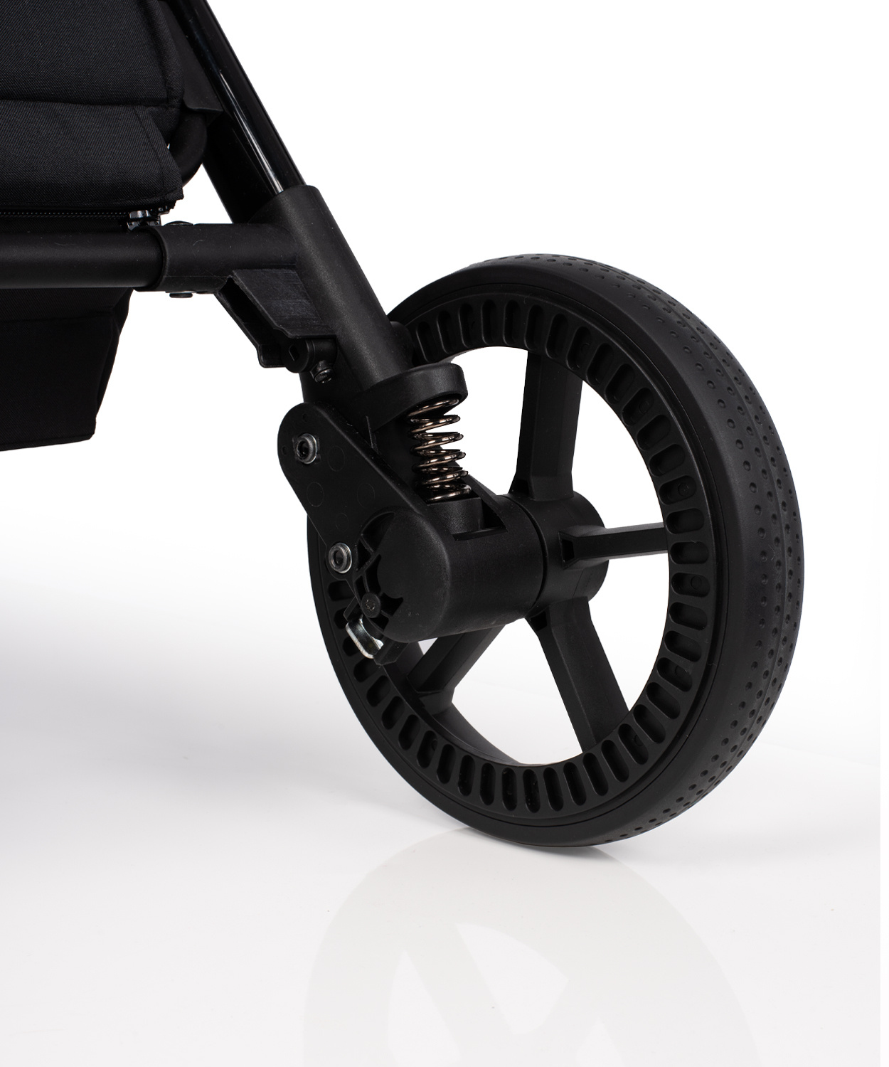 Wózek Venicci Vero składa się jedną ręką, a po złożeniu zajmuje niewiele miejsca. Dzięki paskowi możemy wygodnie przenosić spacerówkę bez użycia rąk - zarzucając ją na ramię.Gumowe koła z amortyzacją
