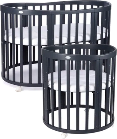 Waldin łóżeczko z materacem 7w1 (owalne), Grafit