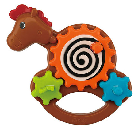 Zabawka edukacyjna konik daje mnóstwo radości, która jest połączona z nauką. Konik posiada trzy pokrętła i zębatki, dzięki którym jego główka porusza się w górę i w dół. Dziecko może złapać za poręczny uchwyt i zabrać zabawkę wszędzie ze sobą. Każdy element zabawek K's Kids jest zaprojektowany w taki sposób, aby wspomóc prawidłowy rozwój dzieci. Aby łatwiej było zrozumieć rodzicom, jakie zalety zawierają zabawy z produktami K's Kids, stworzono Trójkąt Umiejętności, który pokazuje czego dziecko potrzebuje dla prawidłowego rozwoju fizycznego, poznawczego oraz społecznego. Trójkąt Umiejętności to prosty przewodnik dla rodziców, pokazujący jakie umiejętności zdobywa lub rozwija dziecko w czasie zabawy daną zabawką i znajduje się na każdym opakowaniu produktów. Część zabawek jest zaprojektowana z myślą o rozwoju kilku sfer, inne mają za zadanie kształtować ich większą ilość-w zależności od potrzeb i możliwości dzieci znajdujących się na różnych etapach rozwoju. Jakie umiejętności może rozwinąć Twoje dziecko, podczas zabawy z konikiem? Rozwój fizyczny - zmysły - pobudzają ciekawość dziecka i zachęcają je do odkrywania rzeczy znajdujących się dookoła niego. Zabawki stymulujące zmysły są niezwykle ważne we wczesnym okresie rozwoju dziecka - motoryka mała - rozwija precyzyjne i kontrolowane ruchy, wraz z mimiką twarzy, koordynację wzrokowo-ruchową oraz prawidłową artykulację wyrazów - motoryka duża - to ruchy większych mięśni odpowiedzialnych za pracę ramion, nóg, stóp lub całego ciała. Zabawki zachęcają dziecko do kopania, raczkowania, biegania lub skakania Rozwój poznawczy - umiejętności logiczne - umożliwiają dzieciom łączenie skrawków informacji. Zabawki, takie jak układanki czy klocki, mogą wzmocnić dziecięcą inteligencję, układania w kolejności, koncentracji, argumentacji i rozwiązywania problemów Rozwój społeczny - poczucie własnej wartości - jest kompleksem osiągnięć, które dziecko odbiera od ważnych od siebie ludzi, w szczególności od rodziców i rówieśników. Kiedy dziecko może dokończyć zadanie, jakie stawia przed nim zabawka, jest z siebie zadowolone. Pomaga mu to w budowaniu silniejszego poczucia własnej wartości i lepszej samooceny.