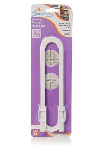 Zamknięcie zabezpieczające DreambabyŸ ogranicza dostęp dzieci do szafek.